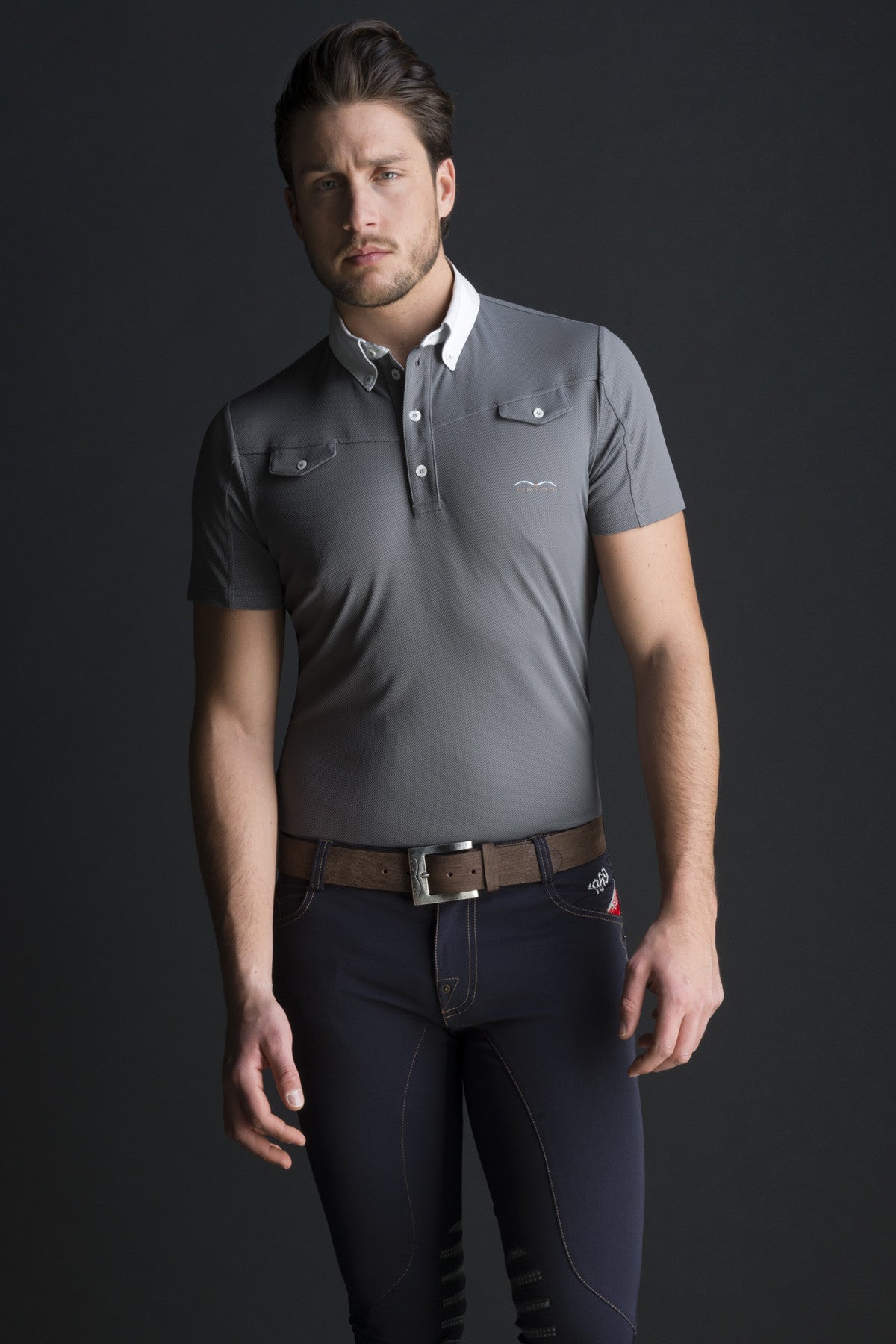 This short sleeve competition shirt is perfect for the competitive rider. In Animo's soft and breathable piquet fabric, complete with a white buttoned-down collar for competition.