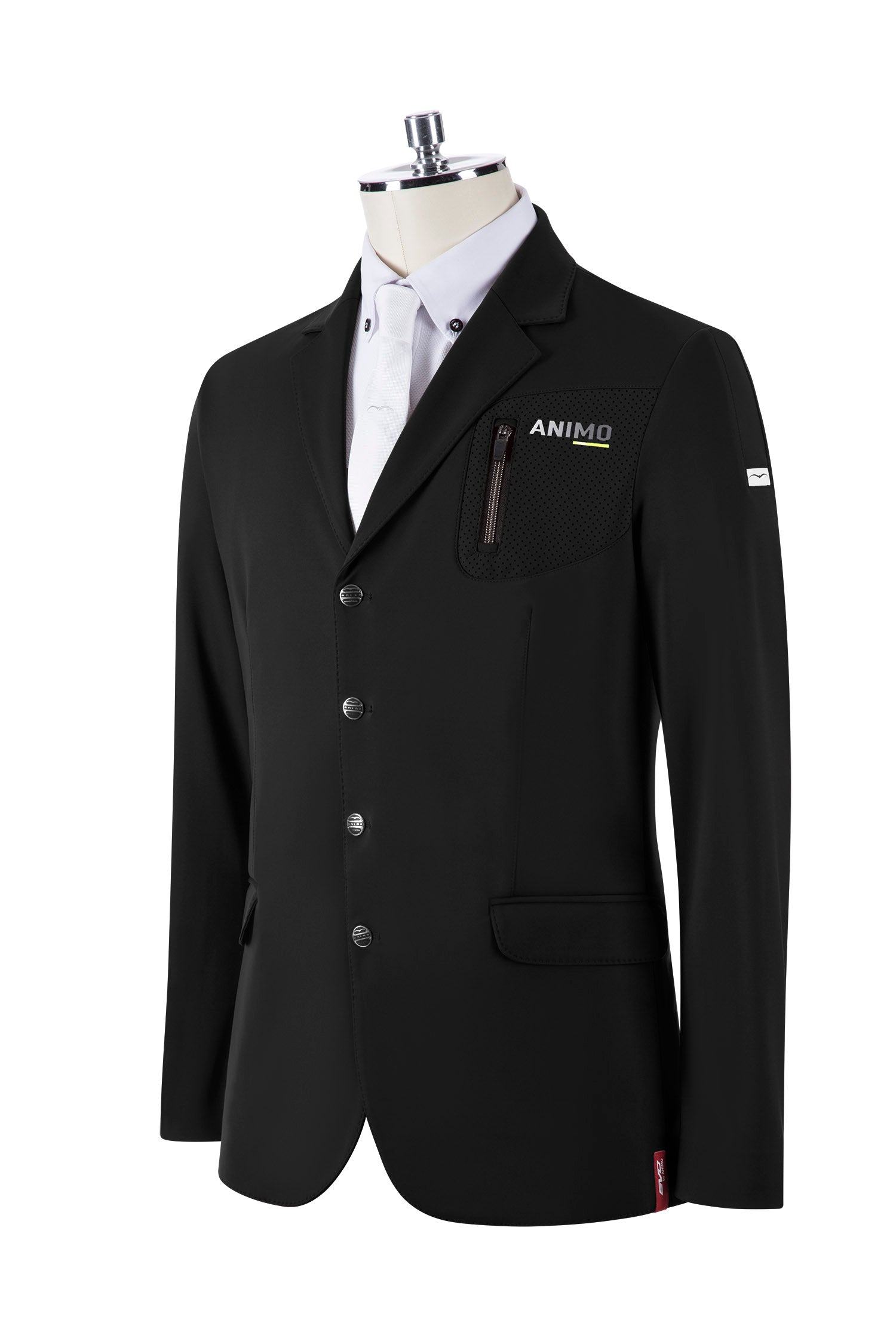 The perfect companion for the next show season is the men's jacket Iambo from the spring/summer collection 2021 by Animo. The jacket has a very sporty look and is very comfortable to wear. The rider is not restricted in any movement with this jacket, because it is made of elastic material. The light material is breathable and can transport moisture well to the outside, so the rider has a very high wearing comfort. There is a logo on the chest and a small zip. The jacket closes with four buttons and there are two practical pockets to store small things like treats.