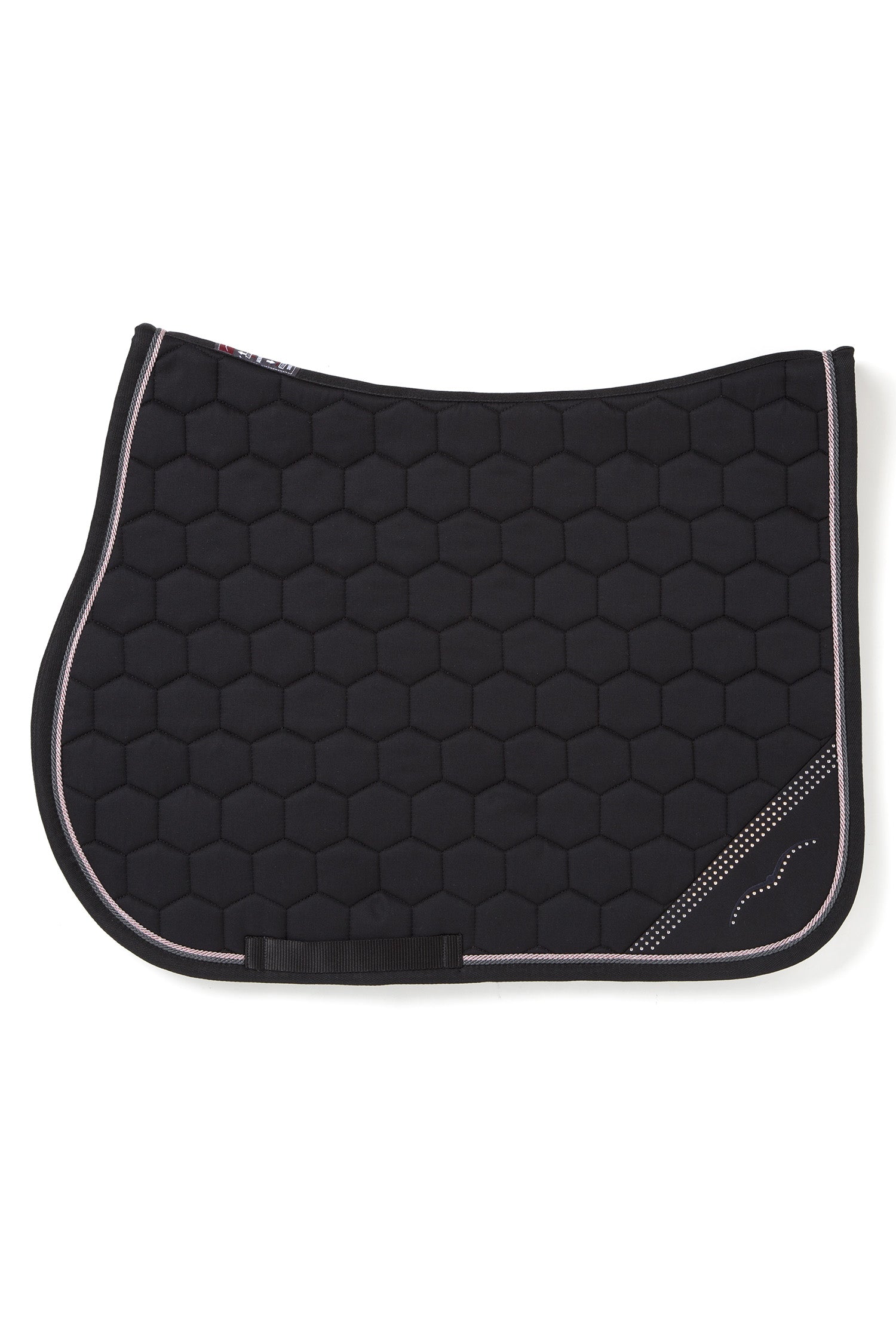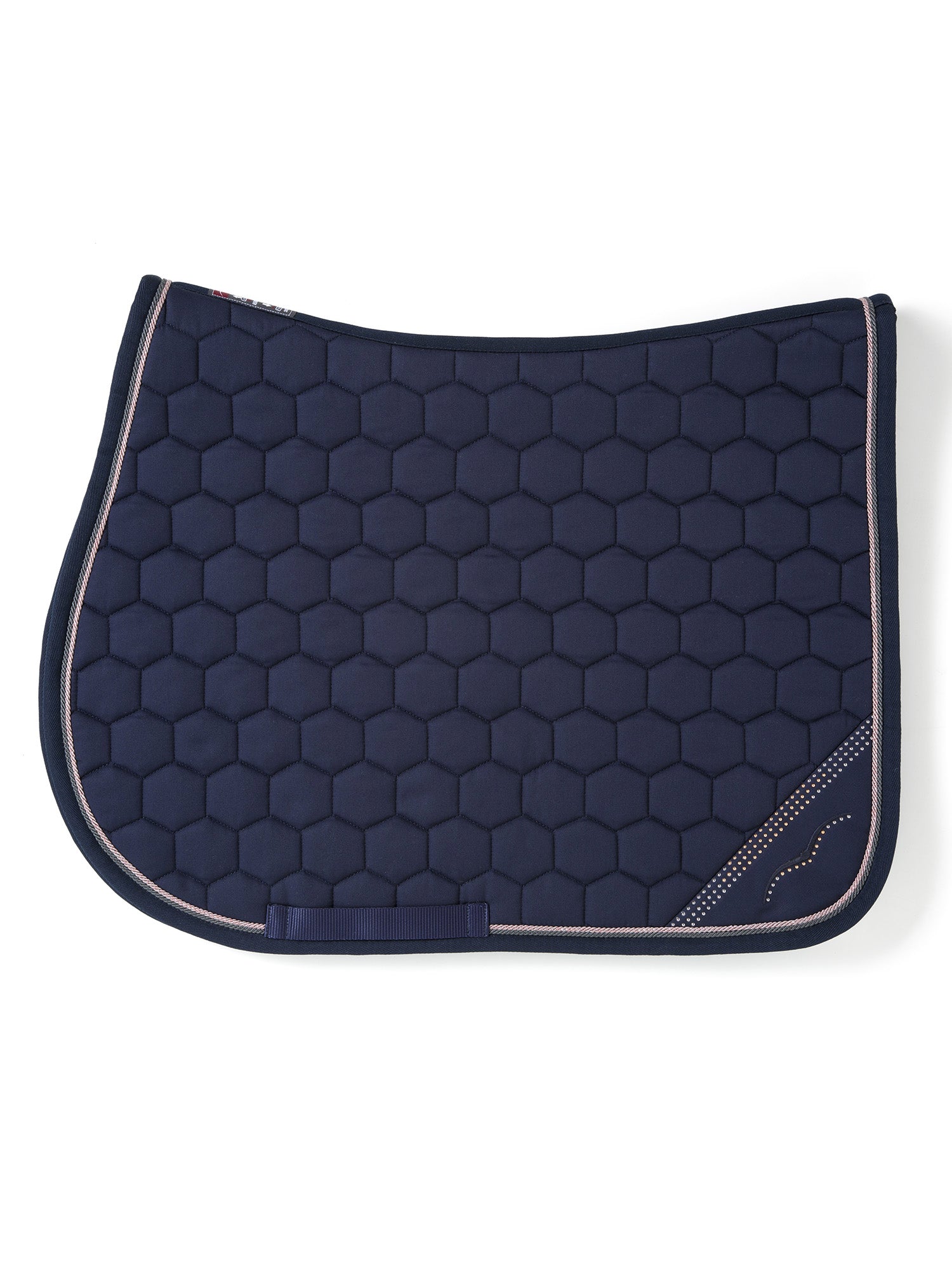 The elegant saddle pad Winc from Animo has a timeless design and is suitable for every occasion. The mixture of cotton and polyester is particularly comfortable for the horse and prevents heat build-up. The saddle pad adapts well to the horse's shape and reduces shocks. There are no saddle loops, but a strap for the girth on each side. The honeycomb stitching and the logo made of Swarovski stones are real eye-catchers. The decorative cords in contrasting colours are another chic detail of this saddle pad. The robust and hard-wearing saddle pad protects the saddle from sweat, dirt and wear. For easy cleaning, the saddle pad can be washed in the washing machine.