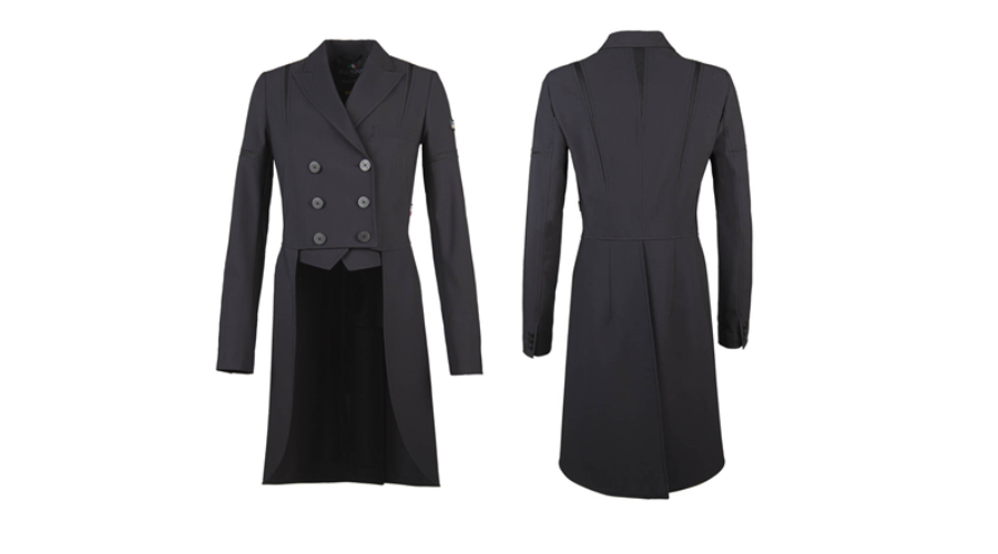 The Equiline Womens Arielle Tailcoat is a premium tailcoat made from a technical X-Cool fabric which is both breathable and water repellent whilst providing the greatest freedom of movement in or out the saddle. Features mesh slit detailing on the arms, over the shoulders, down the back and front. A must have to stand out from the rest whilst still having an elegant finish! The jacket is also machine washable at 30 degrees!