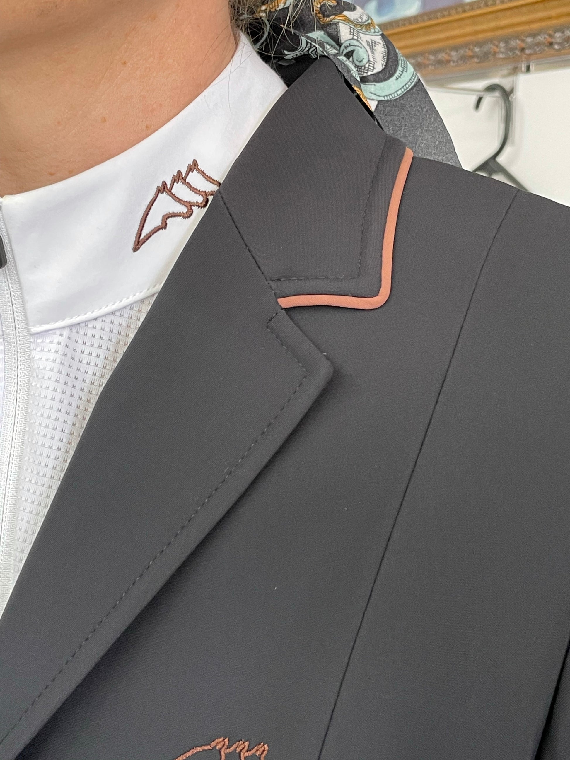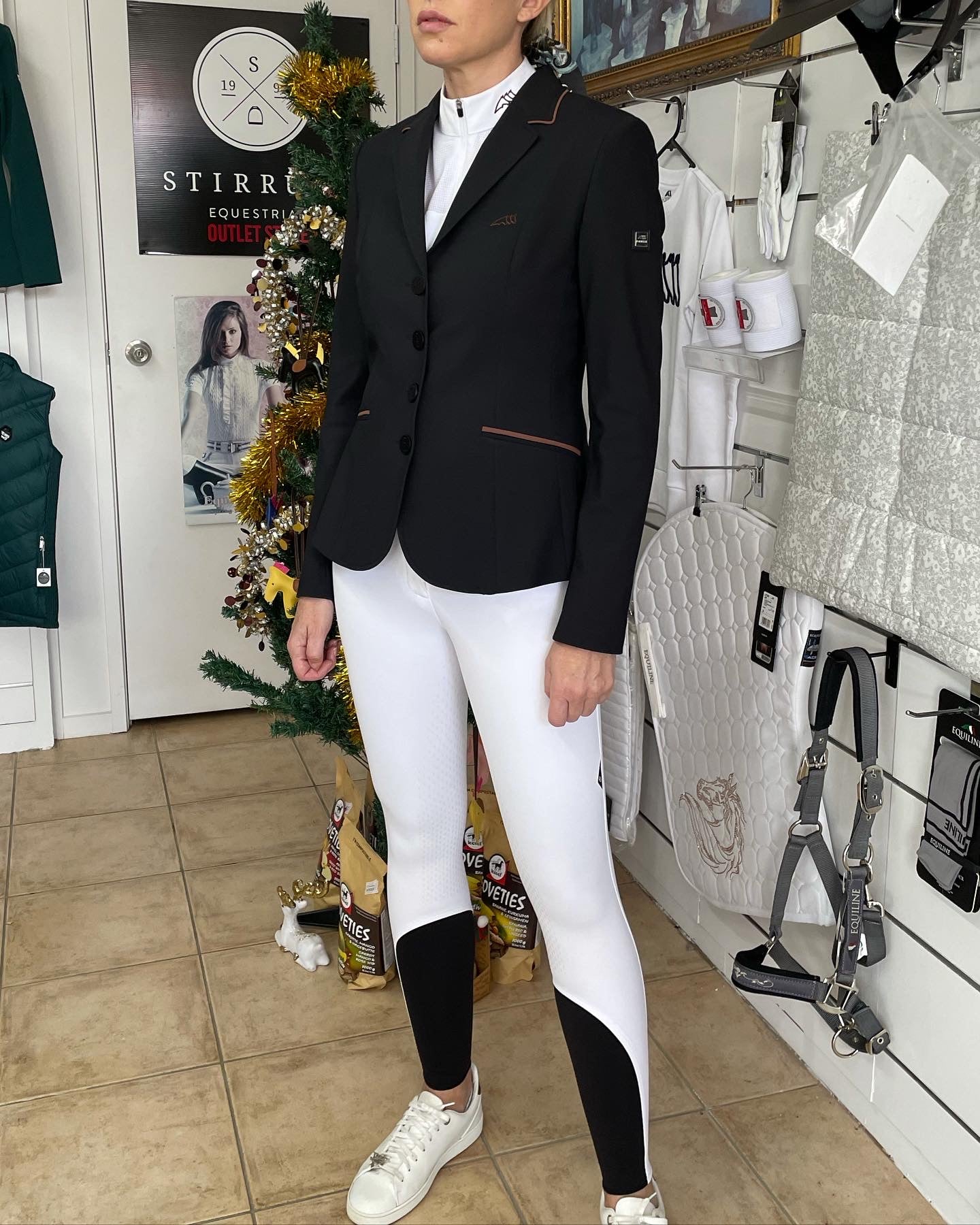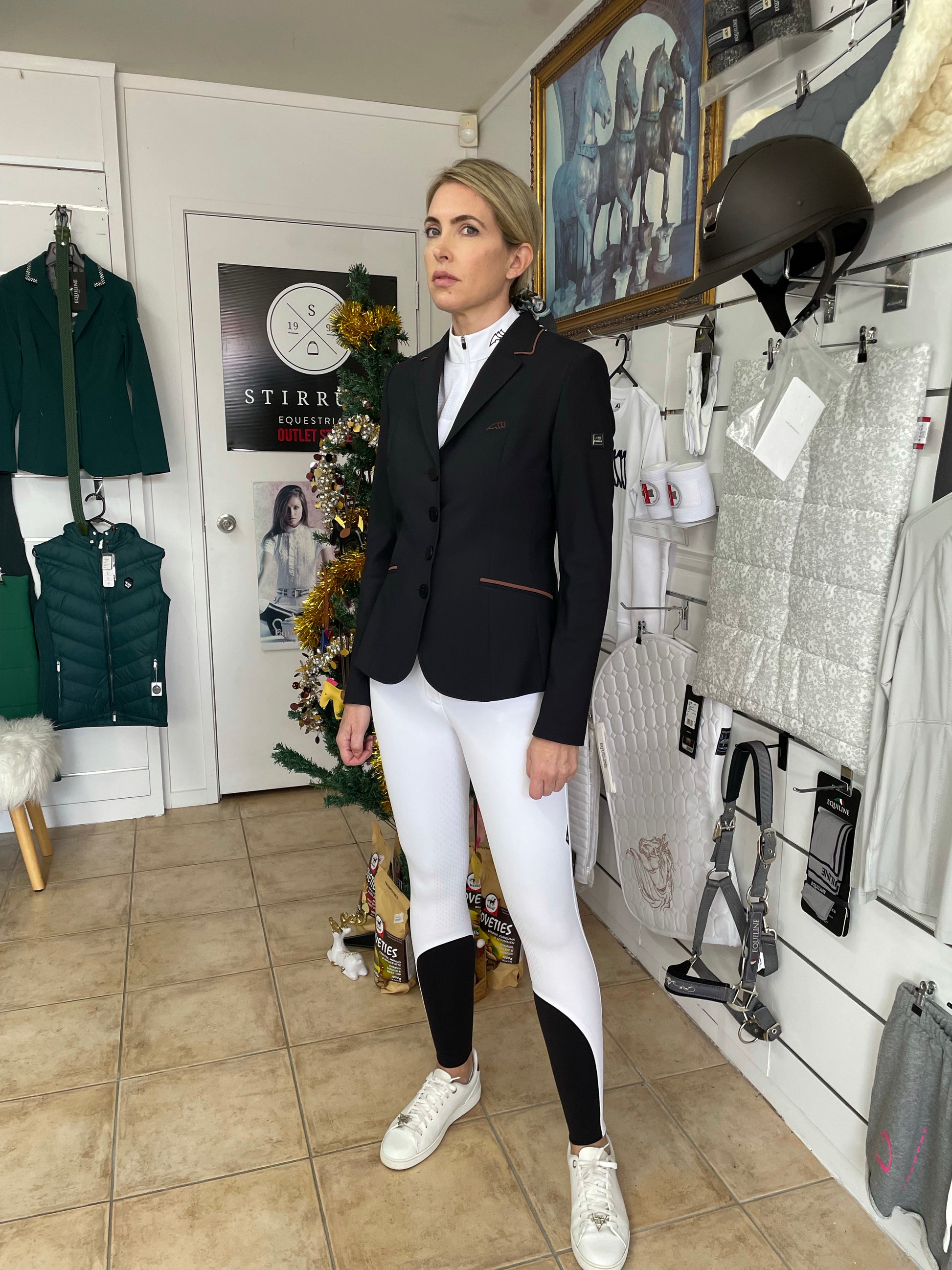 This Competition Jacket is made from the innovative new B-Move material. B-Move by Equiline is a multi-layer fabric that insures maximum comfort and technical performance. Produced by bonding selected fabrics into multiple layers to combine and improve the technical characteristics of each different fibre into a single material. The bonding process guaranteed the body moisture is allowed to exit, whilst preventing additional moisture to enter the garment – keeping you dry and comfortable from the inside.