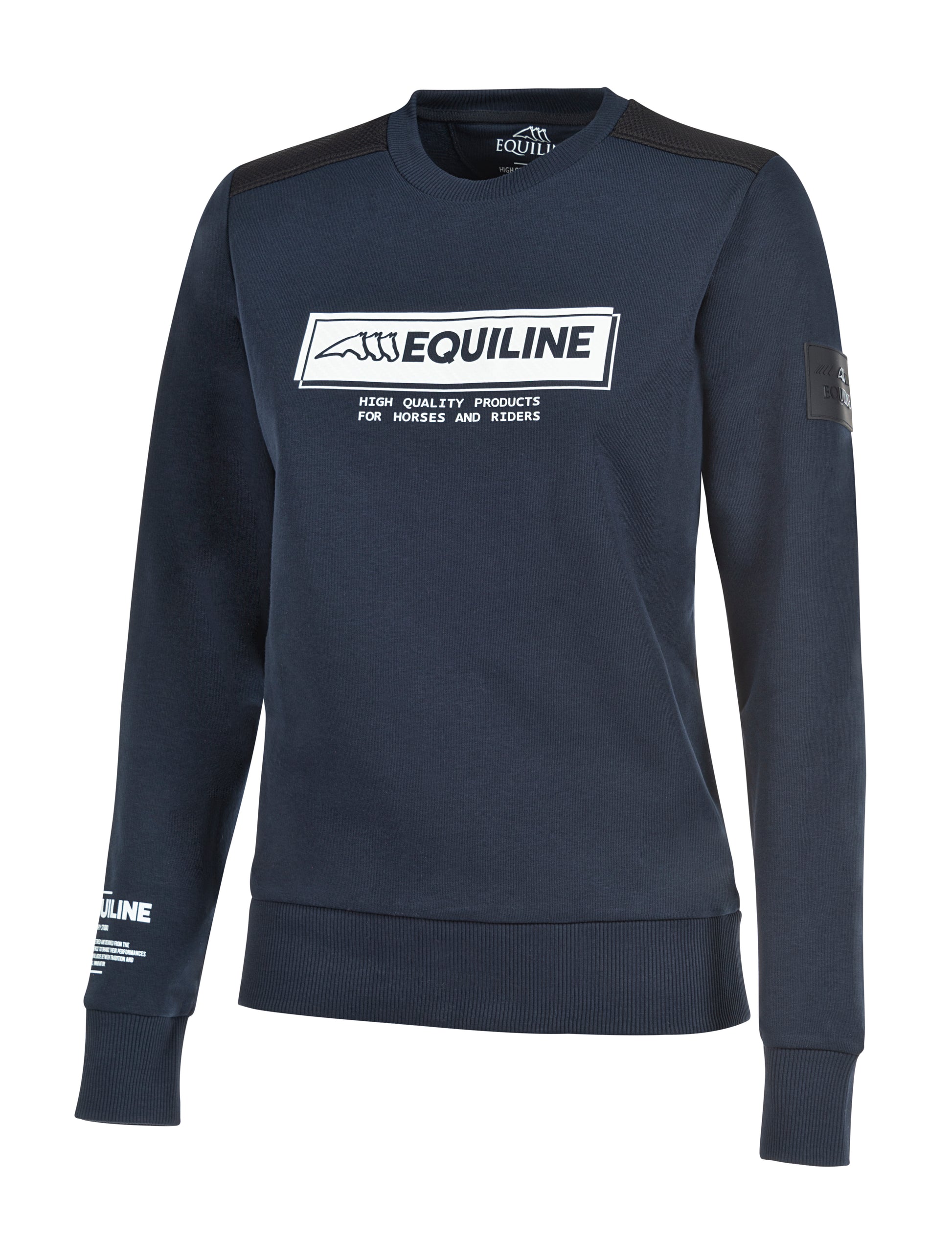 Women’s crewneck sweatshirt with Equiline lettering logo patch print. Made with summer fabric (310 gr), comfort rib bottom and rib cuffs. A must have piece.