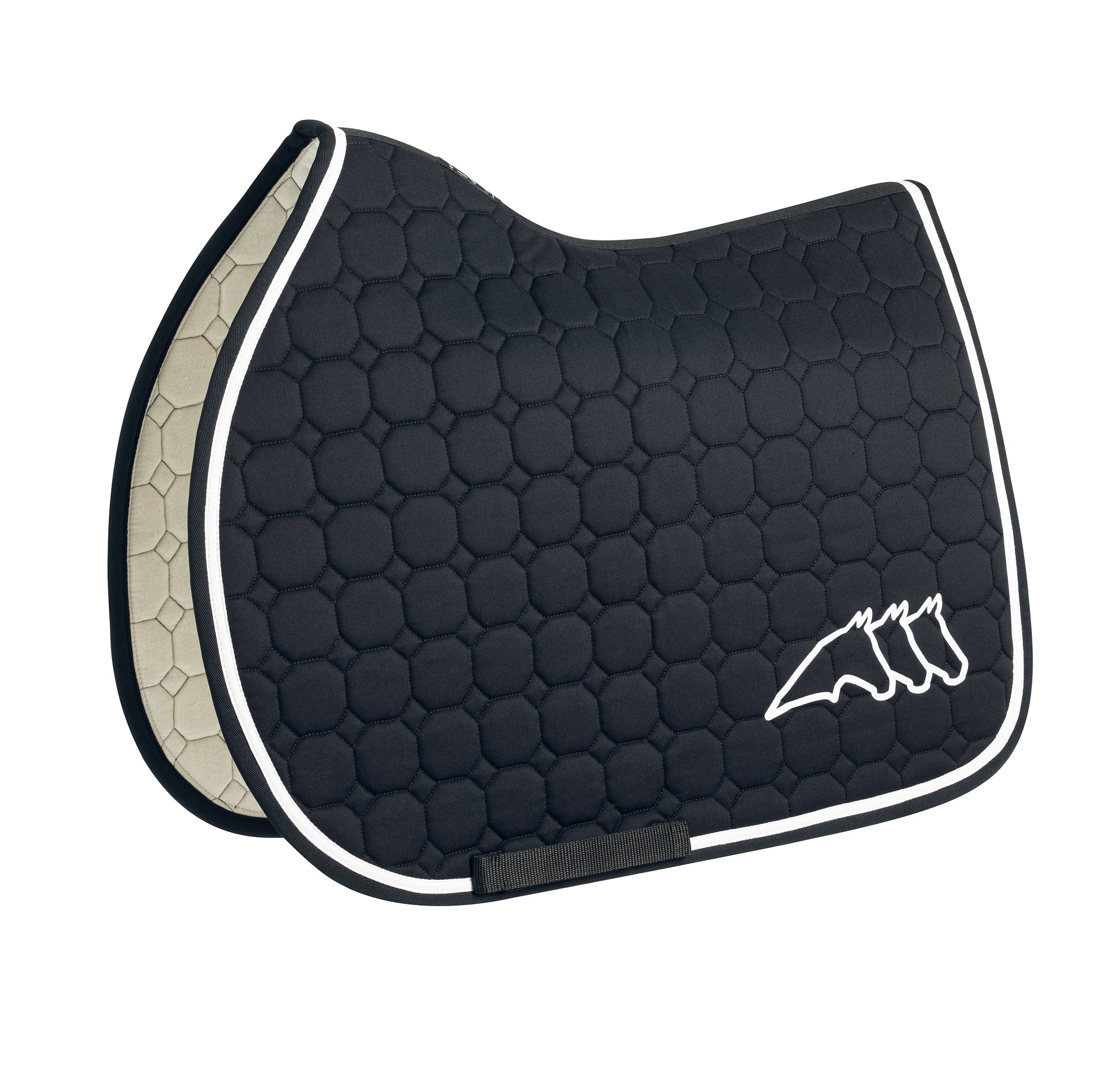 Made with the popular Octagon design, the Cristophec Saddle pad from our Logo Collection. With a thin white piping and three horse heads logo, this pad adds the perfect contemporary edge to your show ring look. Pair it with the Cristophec Ear Net to complete the look.