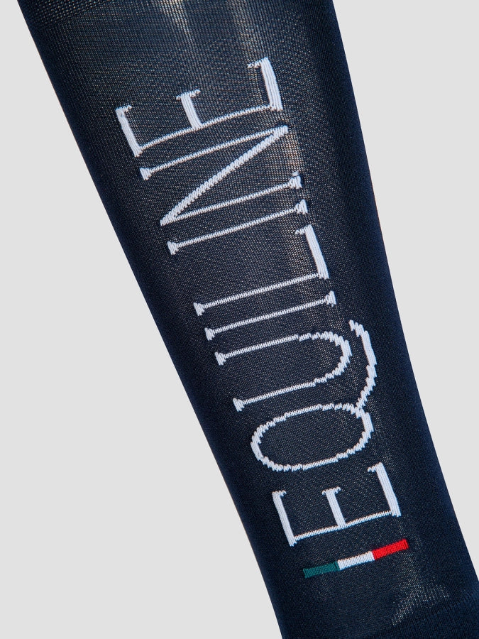 Grip print on inner lining for excellent hold of the sock. Equiline lettering and flag.
