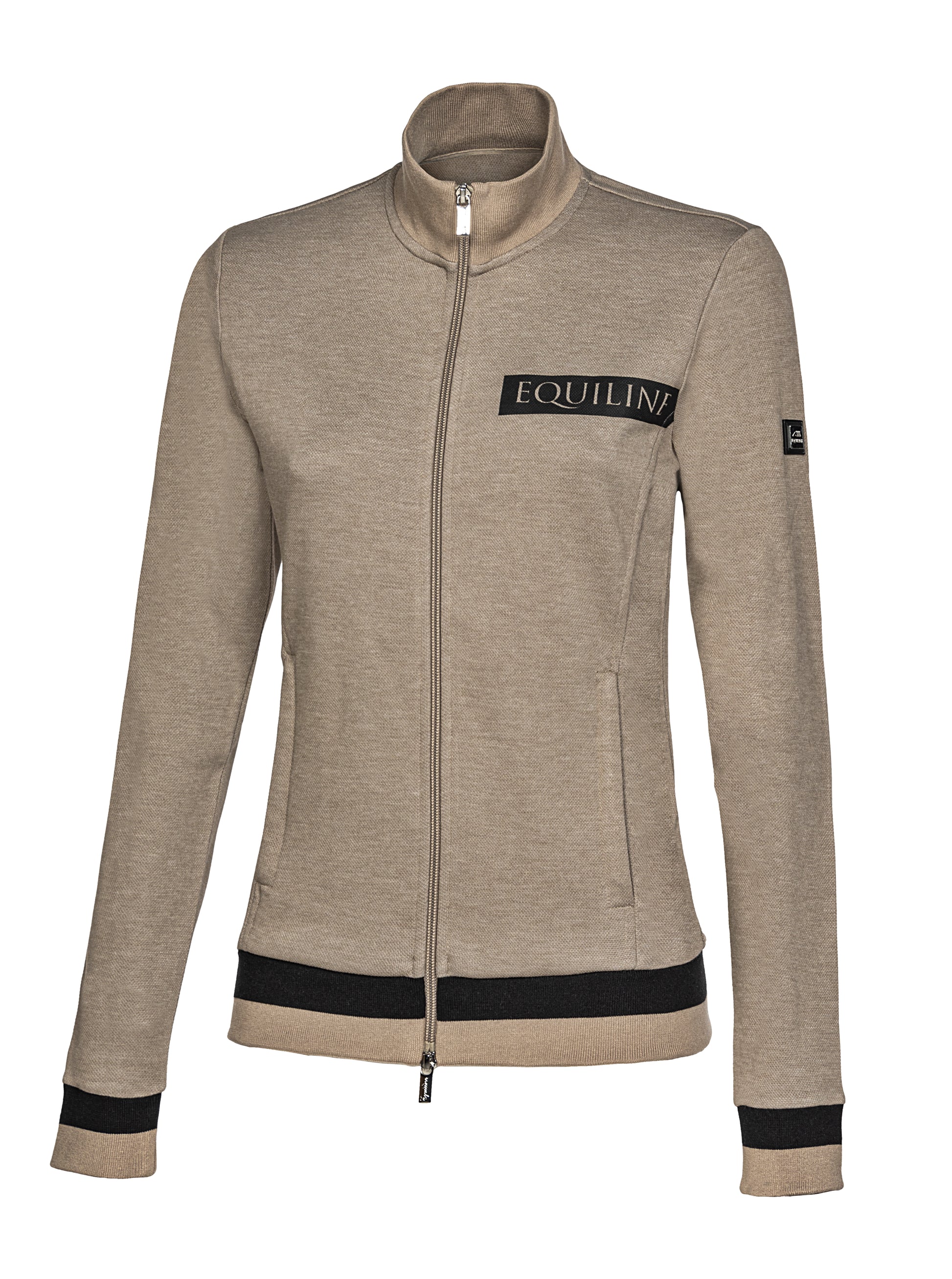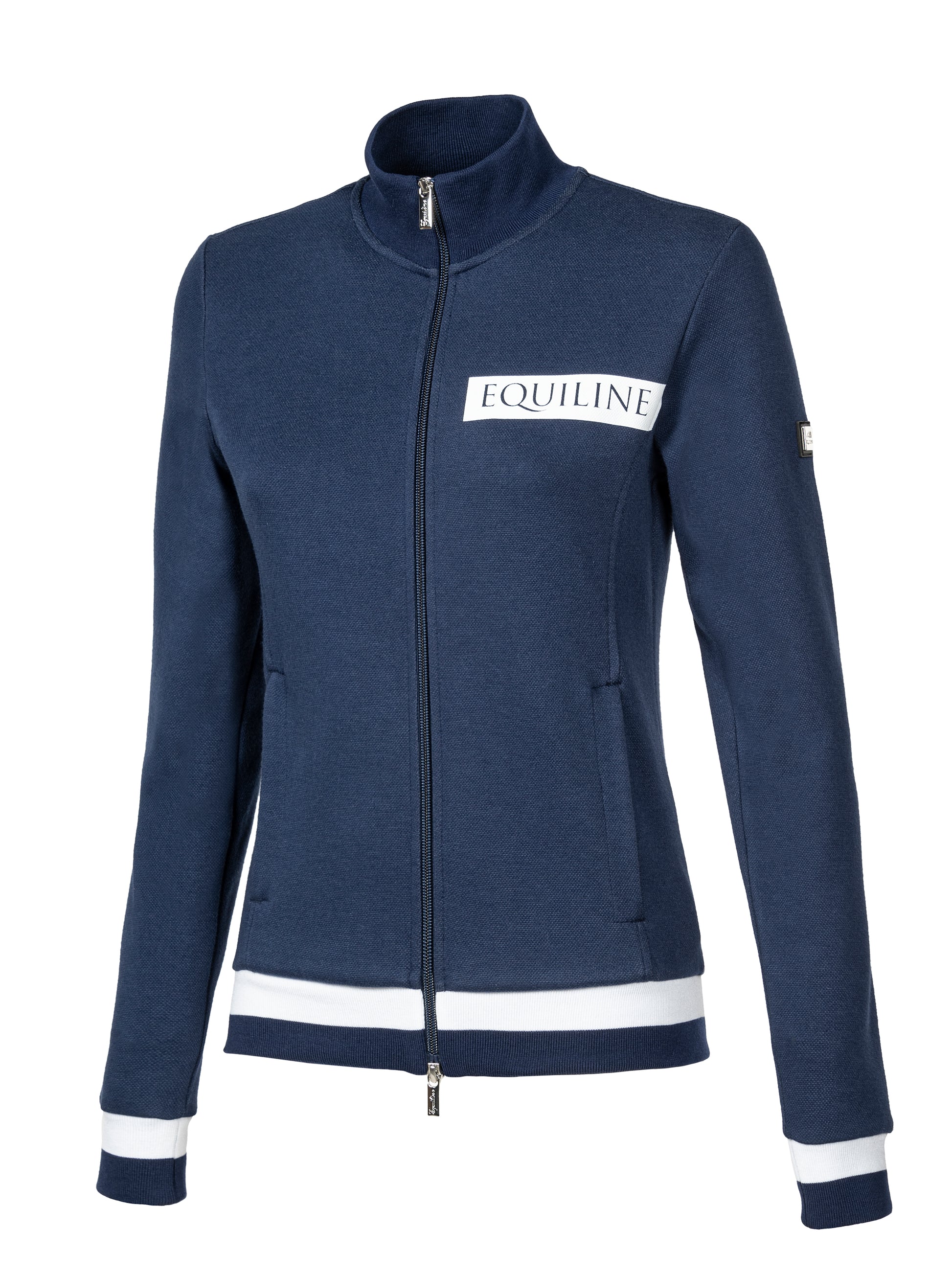 Ladies cardigan from the Equiline summer collection. This vest is made of comfortable and breathable fabric. The sleeves and hem are finished with ribbing. The vest has a 2-way zip and two zip pockets. This vest is finished with a sporty Equiline text on the left chest and an Equiline badge on the left sleeve.