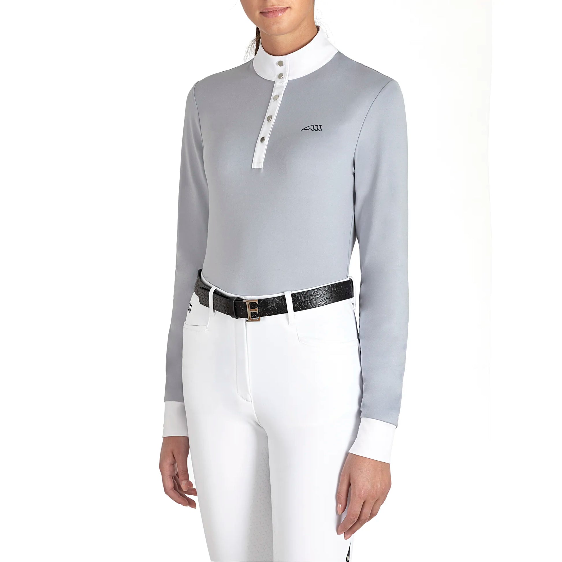 Long sleeved Equiline competition shirt in ice grey. Finished with a brushed lining for warmth and white collar and cuffs. Equiline logo on the chest.