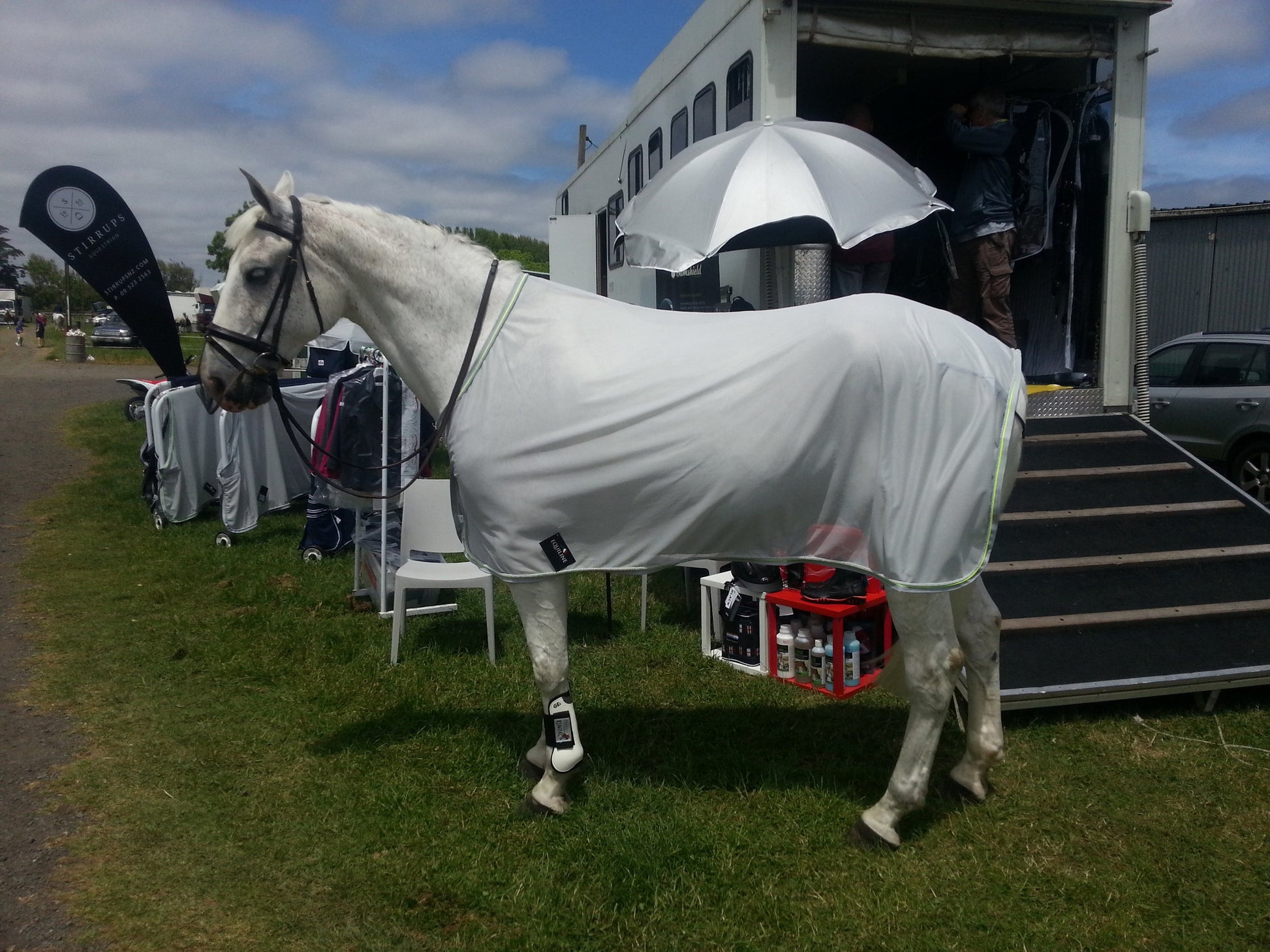 Quality Anti Fly Sheet from Equilines flash summer collection. The cover is a light Aluminium colour with silver roping and a neon trim.