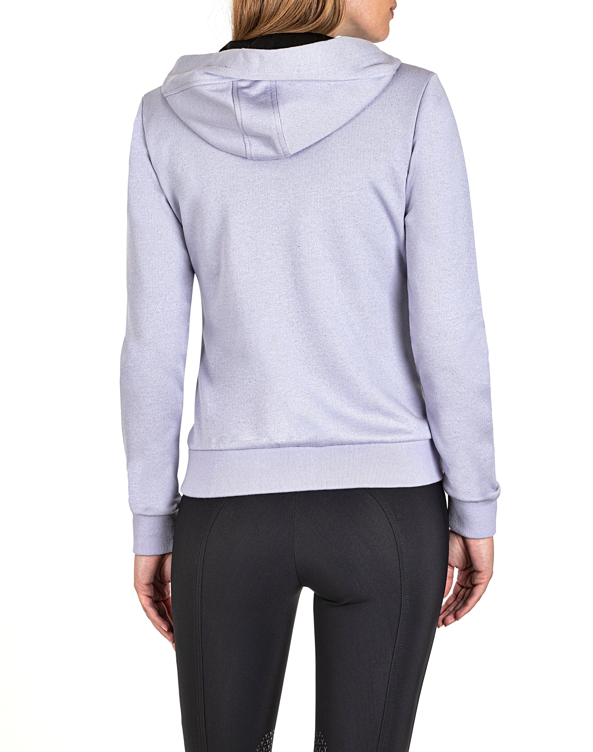 The Equiline Ladies Sweatshirt Goreg is from the Equiline summer collection. The sweatshirt is made of glitter fleece. The sweatshirt features two zipper pockets, a soft hood and a glitter print logo.