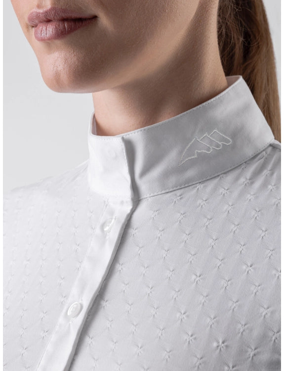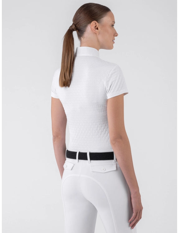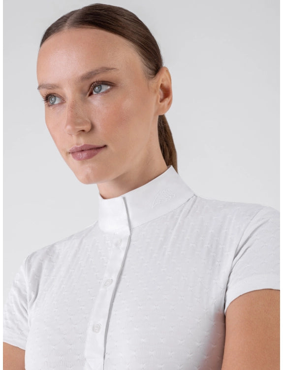 Elevate your competition wardrobe with the AMBERK White Women’s Jacquard Competition Polo, a perfect blend of style and comfort. The unique jacquard design adds a touch of sophistication, while the poplin collar exudes classic elegance. The hidden snap button closure ensures a seamless and polished look. With the logo discreetly embroidered in white on the neck, this short-sleeved polo is a statement of refined taste and attention to detail.