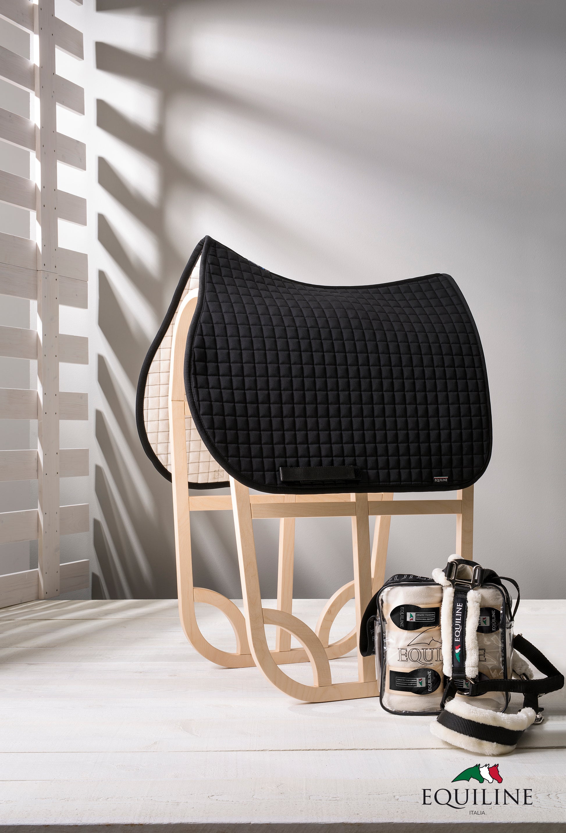 Saddle pad made of a natural cotton blend, both internally and externally. The fabric is antibacterial and hypoallergenic. Padded with 400g pure breathable cotton wool wadding. Optimum breathability (ACS2) and excellent shock absorption.