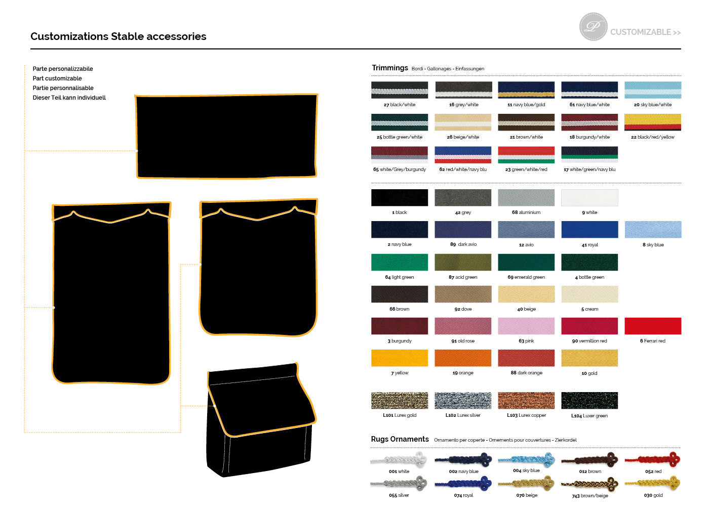 Stable guard made of water repellent polyester with adjustable hooks. Fabric easy to clean. You can select your own individual cords by arrangement at an additional cost.