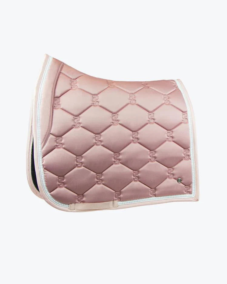 With an anatomically shaped design, the Signature saddle pad provides extra space for the withers, promoting the horse’s freedom of movement. Made from the finest satin, it features a Quick Dry lining that effectively wicks away moisture and sweat, allowing it to dry quickly after use. For enhanced stability, it is equipped with shock-absorbing padding and stop cushions to prevent slipping. The stylish PS quilting and decorative piping give it an exclusive look, with an iconic quote embroidered along the spine. Suitable for schooling or the show ring. PS of Sweden embroidered girth keepers. Silver metal PS logo on the left side.