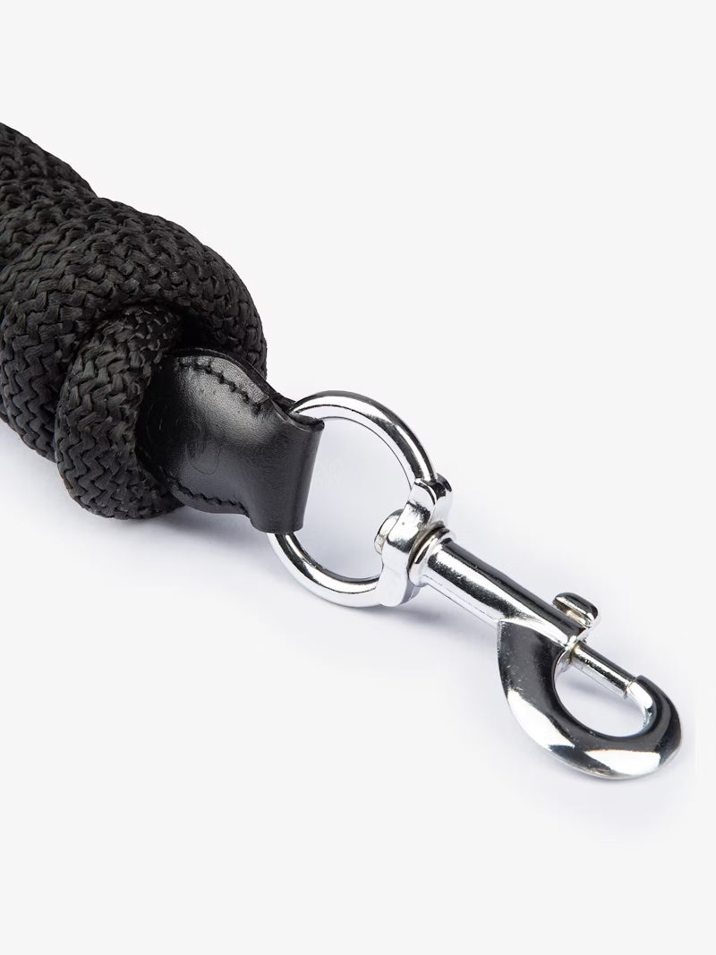 Soft and flexible lead rope in durable polyester reinforced with genuine leather details with debossed PS monogram. Quality metal snap hook for secure lock. Must-have of your horse’s basic equipment when leading your horse. Our lead rope is perfectly matched with our new leather halters.