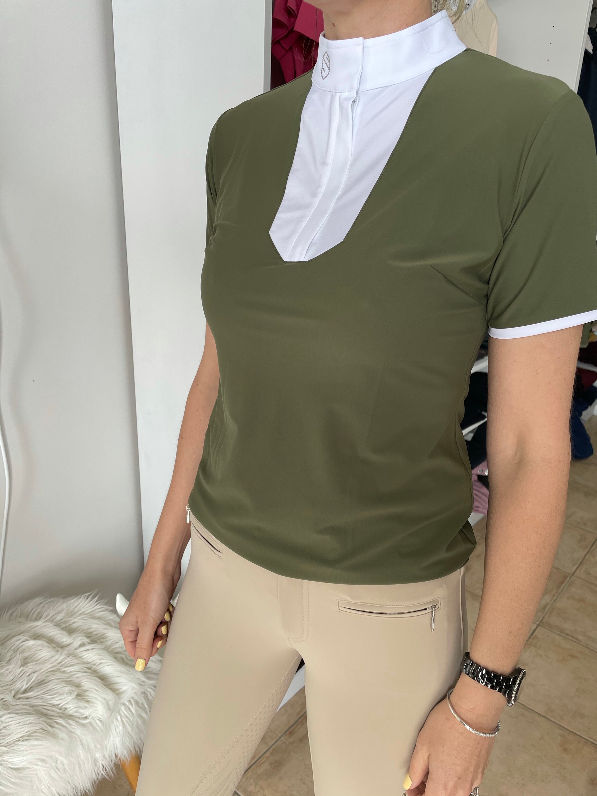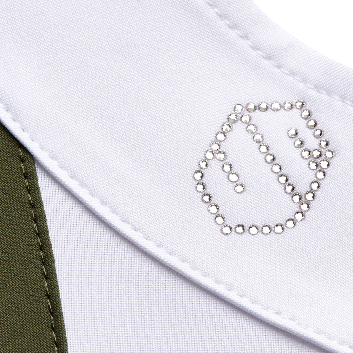 The Apolline shirt is designed with a soft high stretch fabric which provides high breathability and comfort to wear. The tailored fit allows excellent positioning when active. Thanks to the special construction of the fabric, the Apolline shirt offers protection against ultraviolet rays. The collar closes with hidden small snaps and zipper. The Apolline shirt is embellished with a Swarovski® Samshield blazon on the collar and iridescent stripes providing feminity, elegance and refinement.