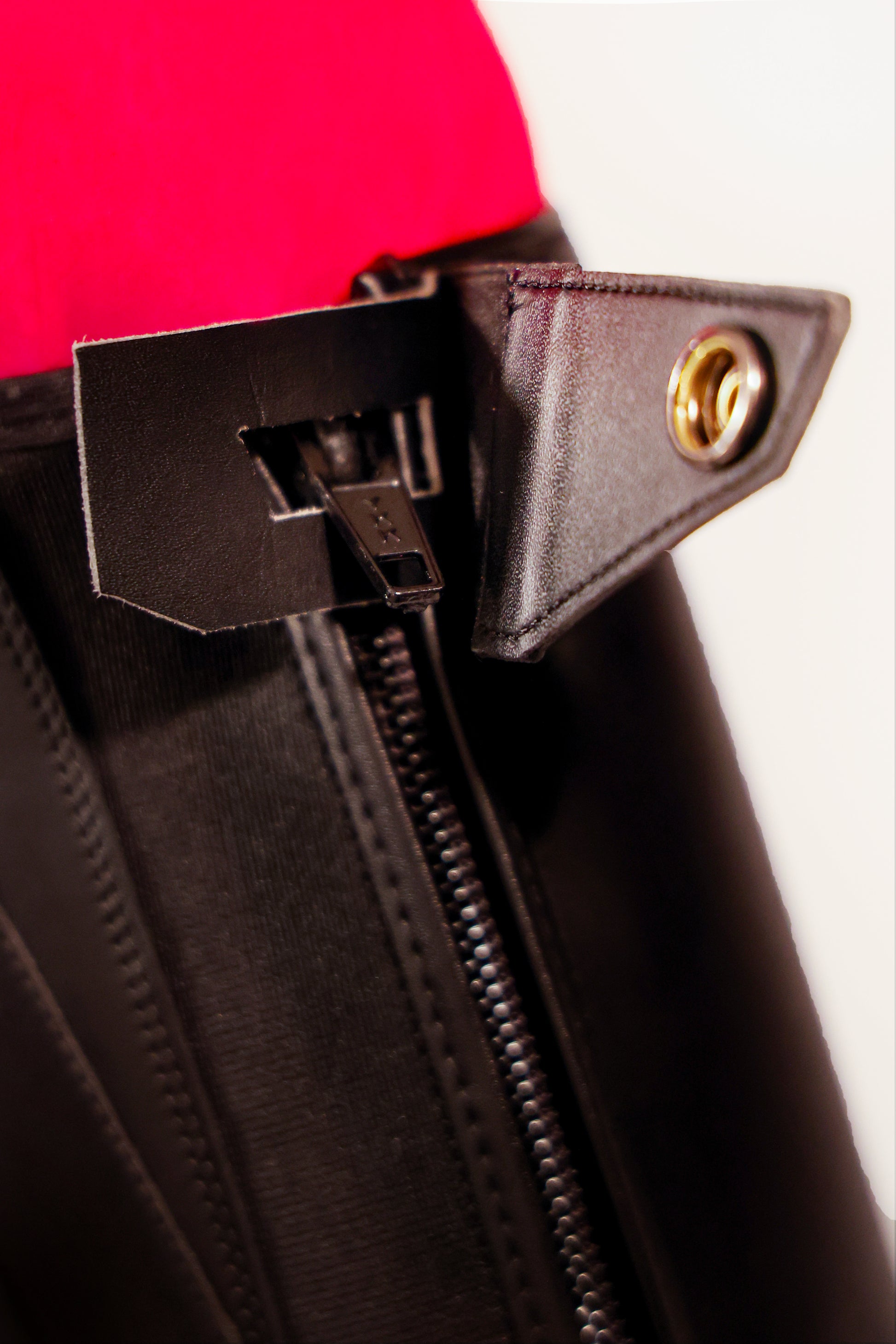 Padded heel protection at the back that shields, facilitates foot entry, and prevents socks from snagging in the zipper.Adjustable spur rest.